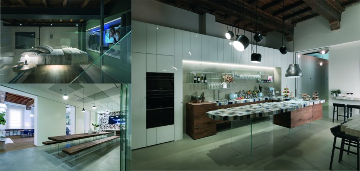 Con la loro discrezione estetica, queste soluzioni d’illuminazione, così geometriche e così tecnologiche, rimangono quasi in secondo piano finché rimangono spente. Ecco, allora, che tutto il locale prende vita e diventano di colpo il focus principale, catalizzando l’attenzione, non appena le accendiamo.
